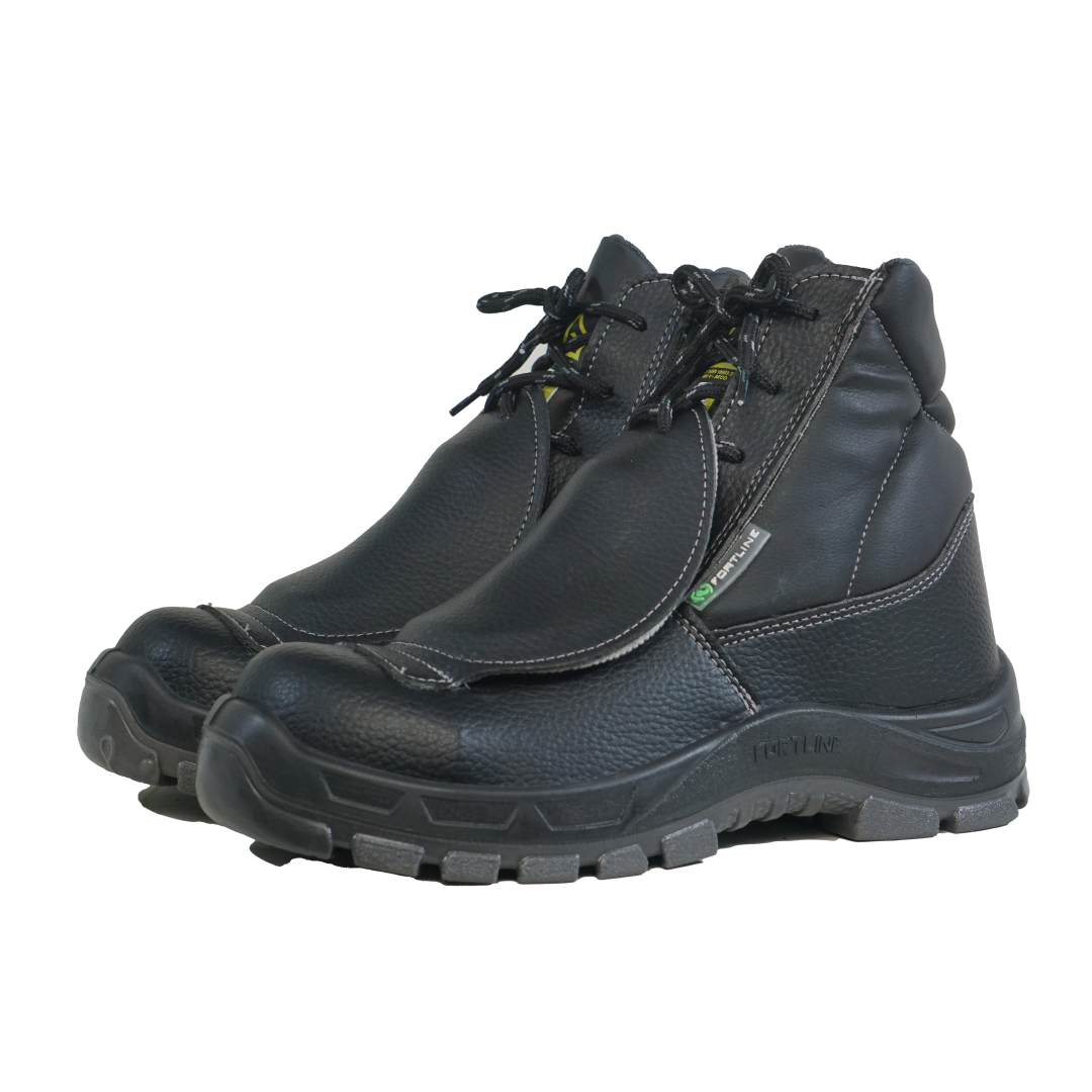 Calçado de segurança isolante elétrico tipo botina, fechamento em cadarço, confeccionado em microfibra, colarinho em material têxtil, forro da gáspea em não tecido, forro do cano em tecido, palmilha de montagem em fibras não metálicas resistentes a perfuração e fixada pelo sistema strobel, palmilha interna removível, biqueira de composite, protetor de metatarso, solado de poliuretano bidensidade injetado diretamente no cabedal, com absorção de energia na região do salto e resistente à passagem de corrente elétrica.